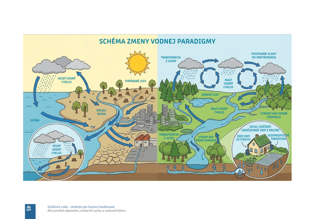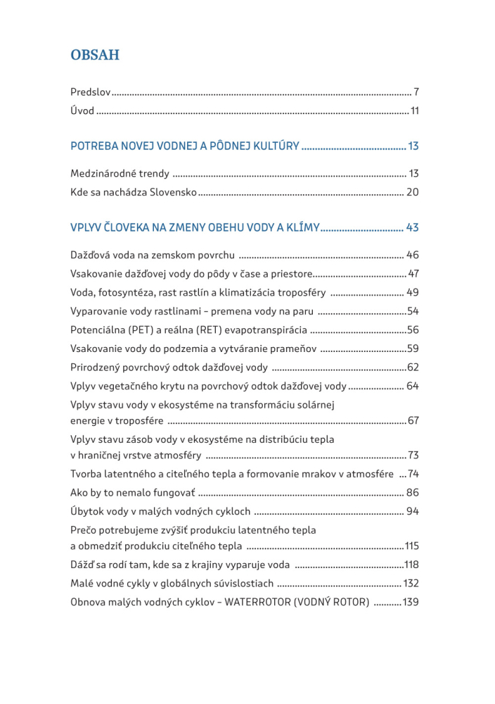 Naša publikácia preto ponúka riešenie do horúcich rokov neistej budúcnosti. Poskytne návod, ako dobre hospodáriť s dažďovou vodou a udržať tak odolnú štruktúru krajiny. Je určená ľuďom v mestách i na vidieku, učiteľom, farmárom, lesníkom, ale i staviteľom budov a majiteľom firiem, starostom a verejným predstaviteľom.